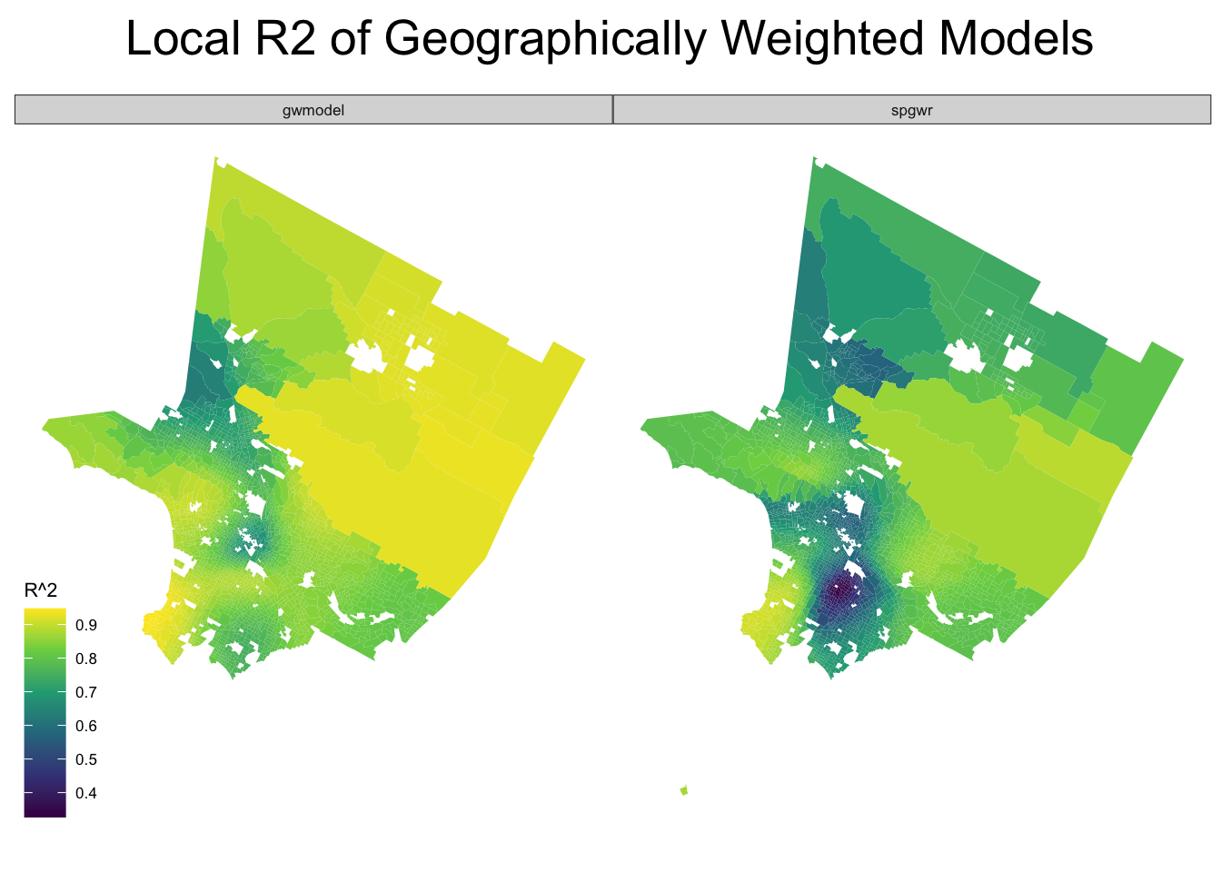 labs(title = "Local R2 of Geographically Weighted Models",